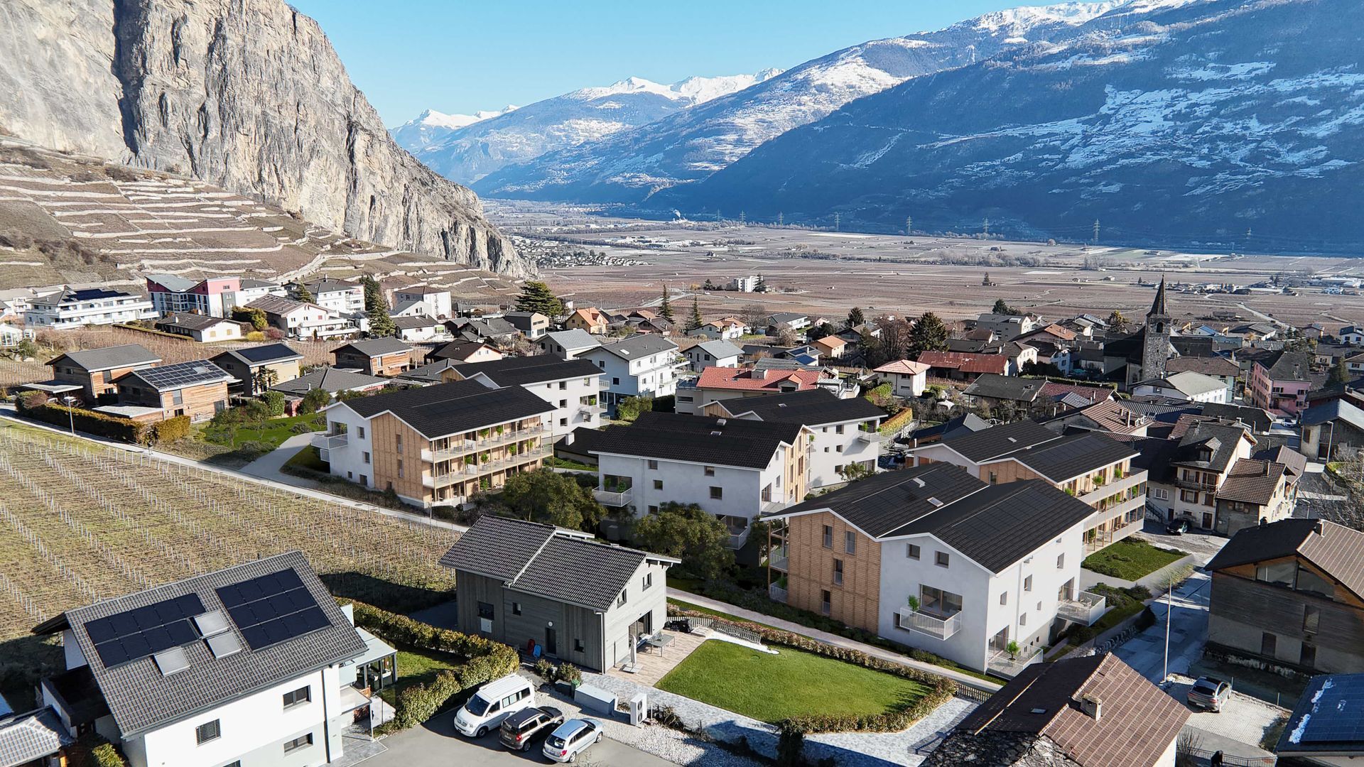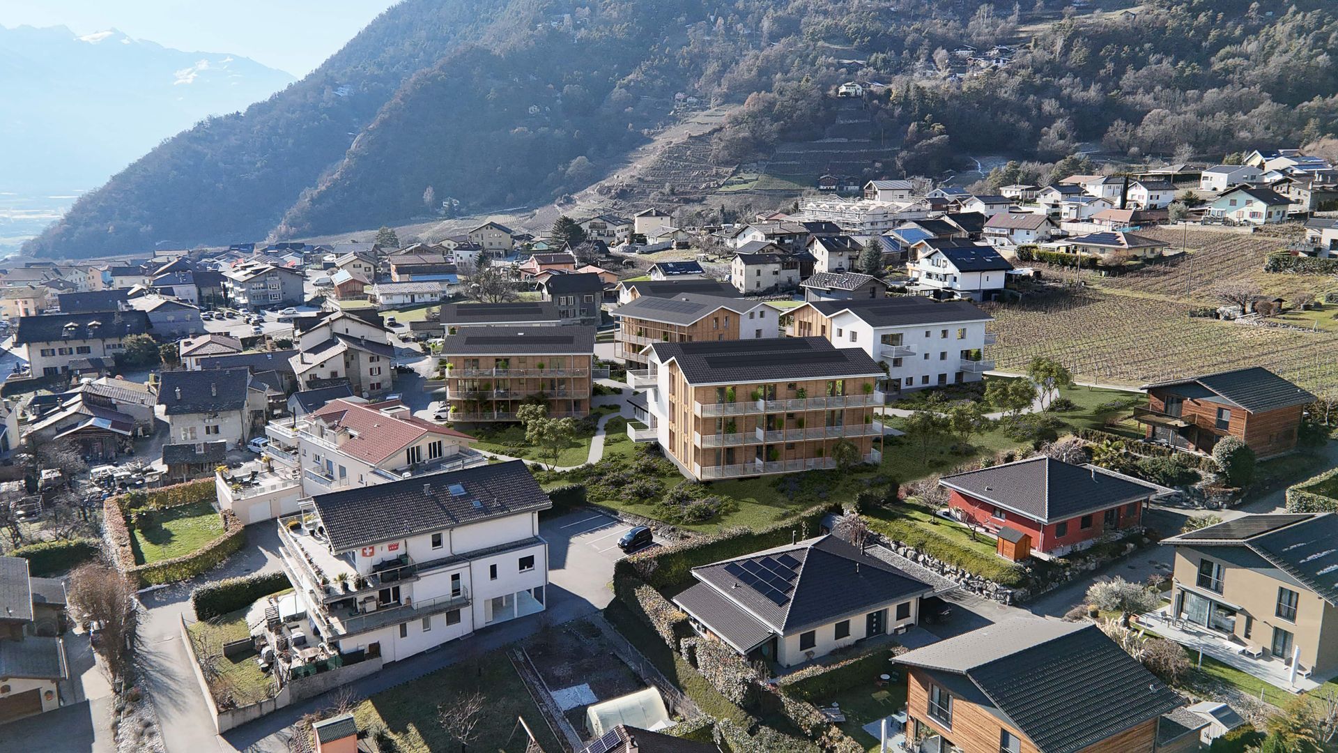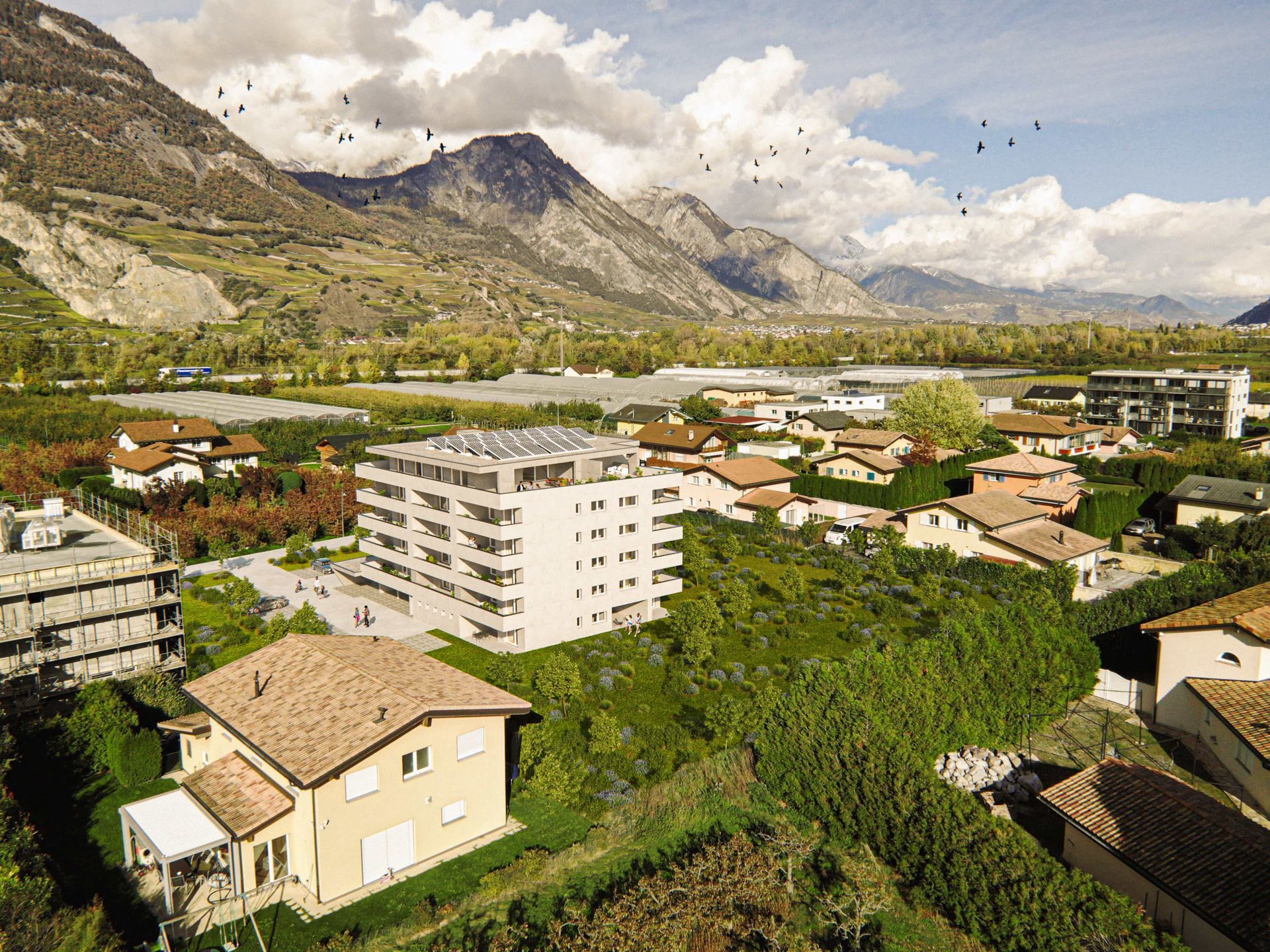Quartier de plusieurs immeubles pour des appartements en PPE, des appartements protégés et des commerces